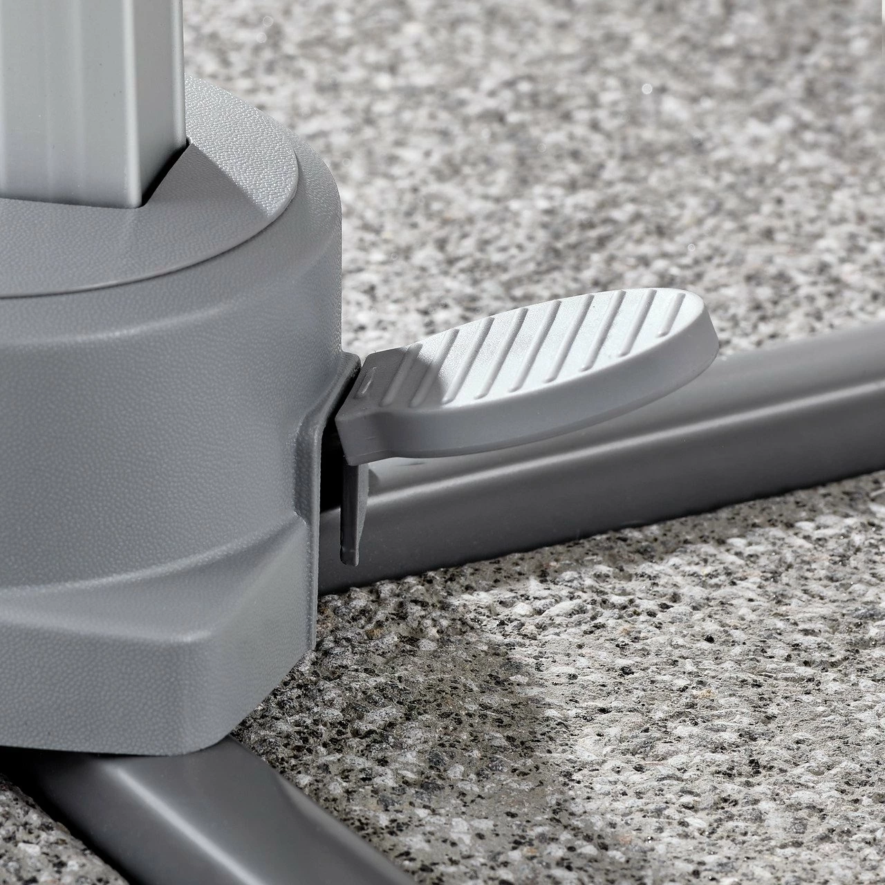 Der Ampelschirm „Sun Deluxe Solar“ von Ambia begeistert mit seiner innovativen Bauweise. Als besonders praktisch erweist sich dabei, dass sich die Halterung auf kreuzförmiger Basis seitlich befindet, sodass der gesamte Raum unterhalb des ca. 300 x 265 x 300 cm großen Daches toll ausnutzbar ist. Zudem lässt sich dieses um 360° drehen, damit der Schattenwurf individuell bestimmbar ist. Das integrierte LED-Licht sorgt auch in den Abendstunden für genügend Beleuchtung. Bereichern Sie jetzt Ihren Außenbereich mit dem Ampelschirm „Sun Deluxe Solar“ von Ambia.