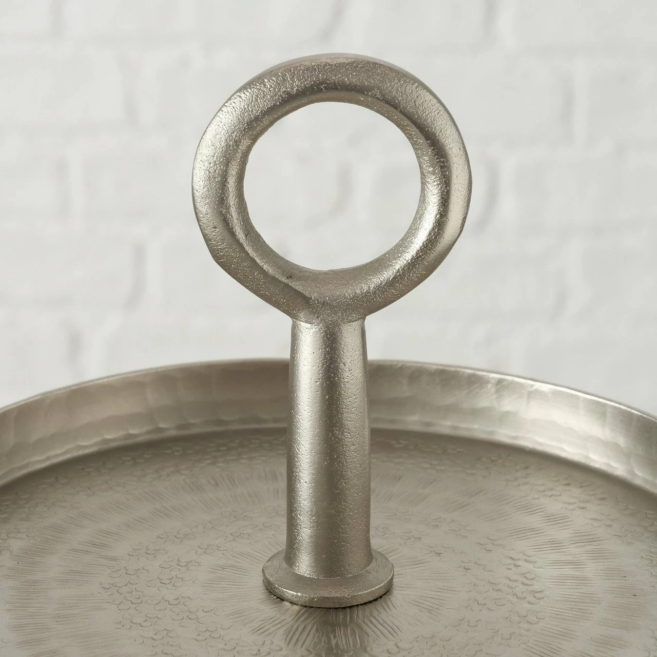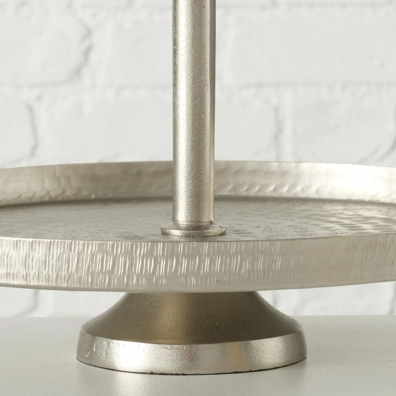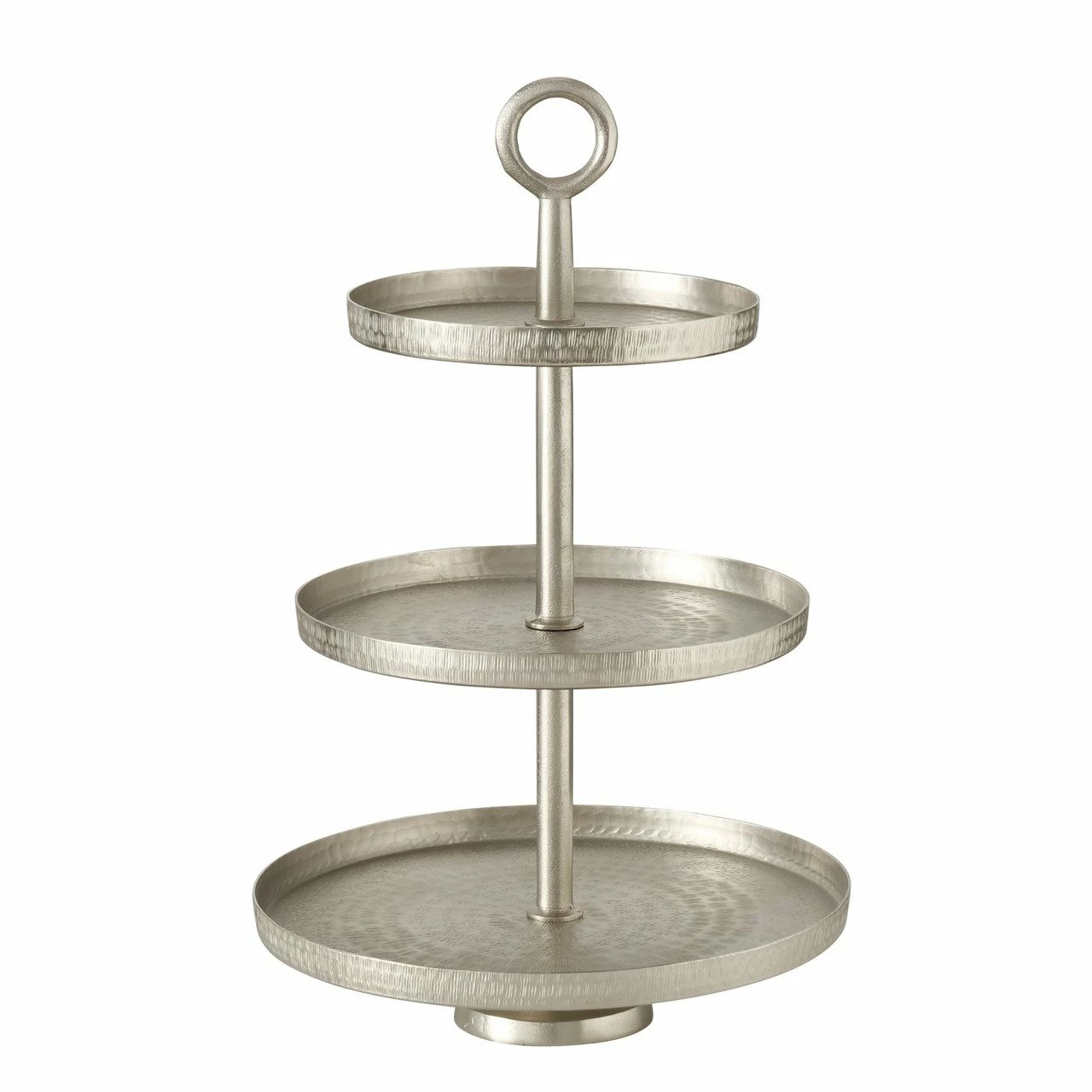Mit der Boltze Etagere „KEITUM“ präsentieren Sie Ihren Gästen kleine Häppchen oder Naschwerk stilsicher und elegant. Gefertigt aus silbernem Aluminium, das vernickelt, beschichtet und gehämmert ist, erweist sich der Tafelzusatz zudem als besonders pflegeleicht. Die D/H ca. 30 x 47 cm große Etagere hat mit einem Eigengewicht von 2,78 kg einen soliden Stand auf dem Tisch, lässt sich dabei aber leicht handhaben. Erfüllen Sie Ihre Gastgeberpflichten formvollendet mit der Boltze Etagere „KEITUM“!