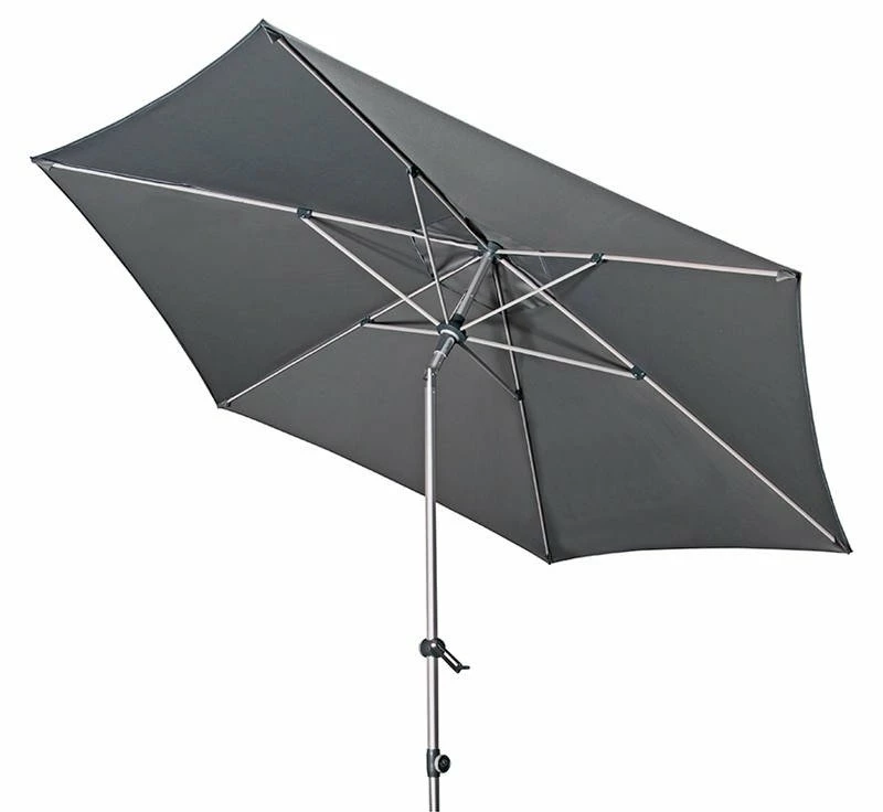 Die Maße D/H ca. 320 x 251 cm belegen eine große Schirmfläche und viel Spielraum bei der Höheneinstellbarkeit. Schützen Sie sich auf Ihrer Terrasse mit diesem stilvollen Schirm!