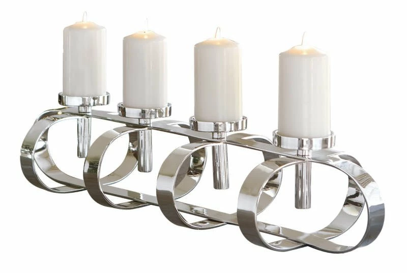 Der 4-flg. Leuchter „Gorden“ aus dem Hause Fink weiß durch sein tolles Design zu punkten. Hergestellt wird er aus vernickeltem Metall mit einem edlen Silberglanz. Das Gestell ist in einer schwungvollen Form gehalten. Mit einer Länge von ca. 85 cm hinterlässt er als attraktiver Blickfang einen imponierenden Eindruck bei Ihren Gästen. Ein vielseitig einsetzbares Dekoaccessoire.