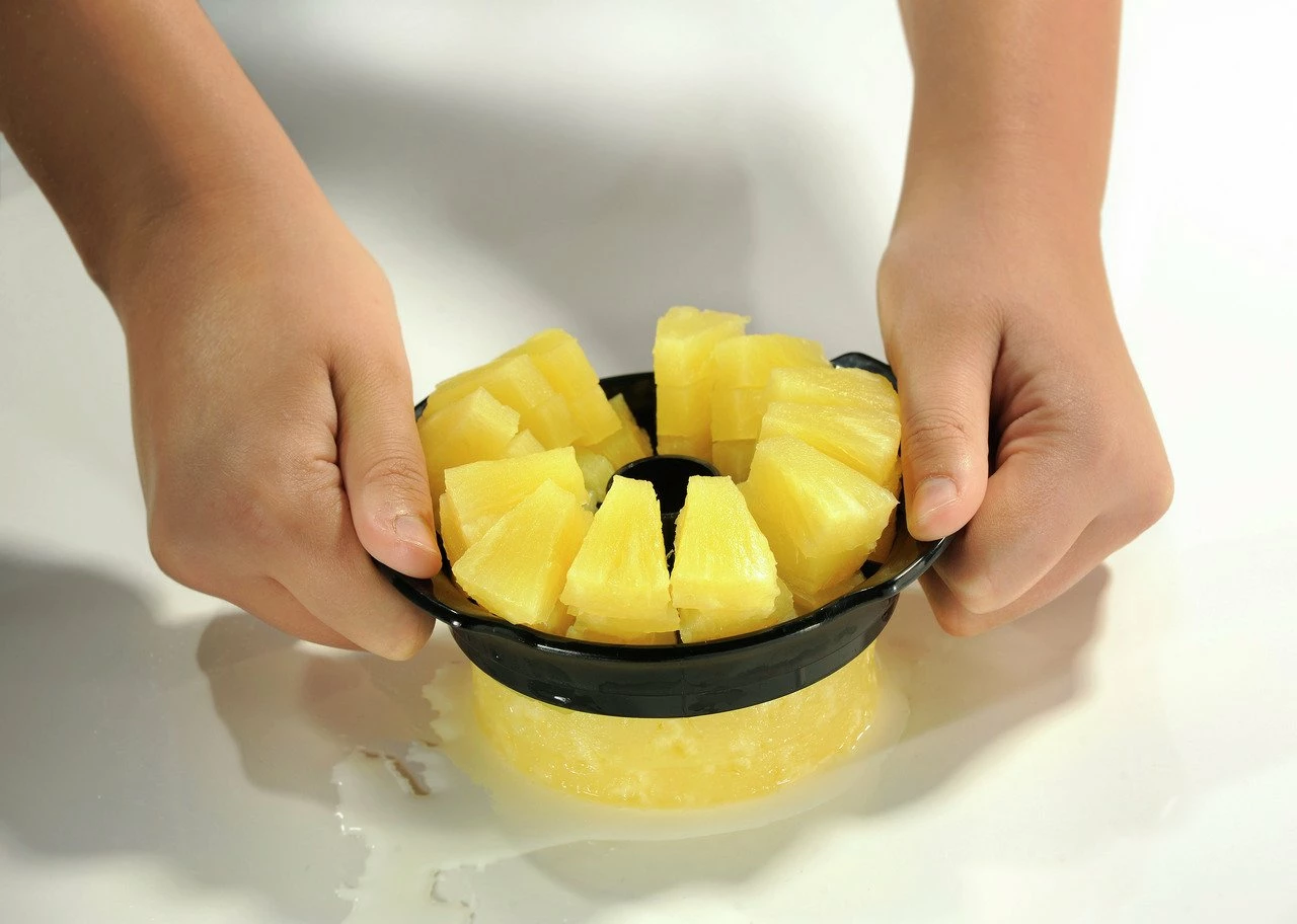 Der Gefu Ananasschneider „PROFESSIONAL“ zerteilt die Südfrucht schnell und kinderleicht. Aus langlebigem Edelstahl gefertigt, begeistert der Schneider durch eine schwarz-silberne Optik. Mit D/H ca. 13,5 x 24 cm Größe hat er auch in kleineren Küchen Platz.