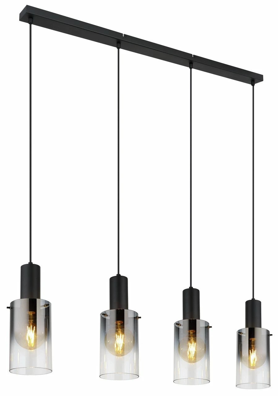 Diese formschöne Hängeleuchte setzt geschmackvolle Lichtakzente und verleiht Ihrer Einrichtung eine besondere Note. Die Leuchte hat sowohl ein Breitenmass von insgesamt 150 cm als auch eine Länge von 102,5 cm, eine Tiefe von 12,5 cm und eine Höhenabmessung von 102,5 cm. Sie bietet die Möglichkeit, die Höhe individuell einzustellen, wodurch sie im Nu an Ihre persönlichen Situationen angepasst werden kann. Die Hängeleuchte aus Metall lässt sich mit vier leicht auswechselbaren Lichtquellen ausstatten. Sie hat eine Anschlussleistung in Höhe von 40 W. Die schwarze Lampe ist mit E27-Fassungen ausgestattet. Bei dieser Hängeleuchte können Sie auf die bewährte Globo-Lighting-Markenqualität zählen. Die Hängeleuchte ist ausgezeichnet dazu geeignet, auch Ihr Zuhause aufzuwerten.