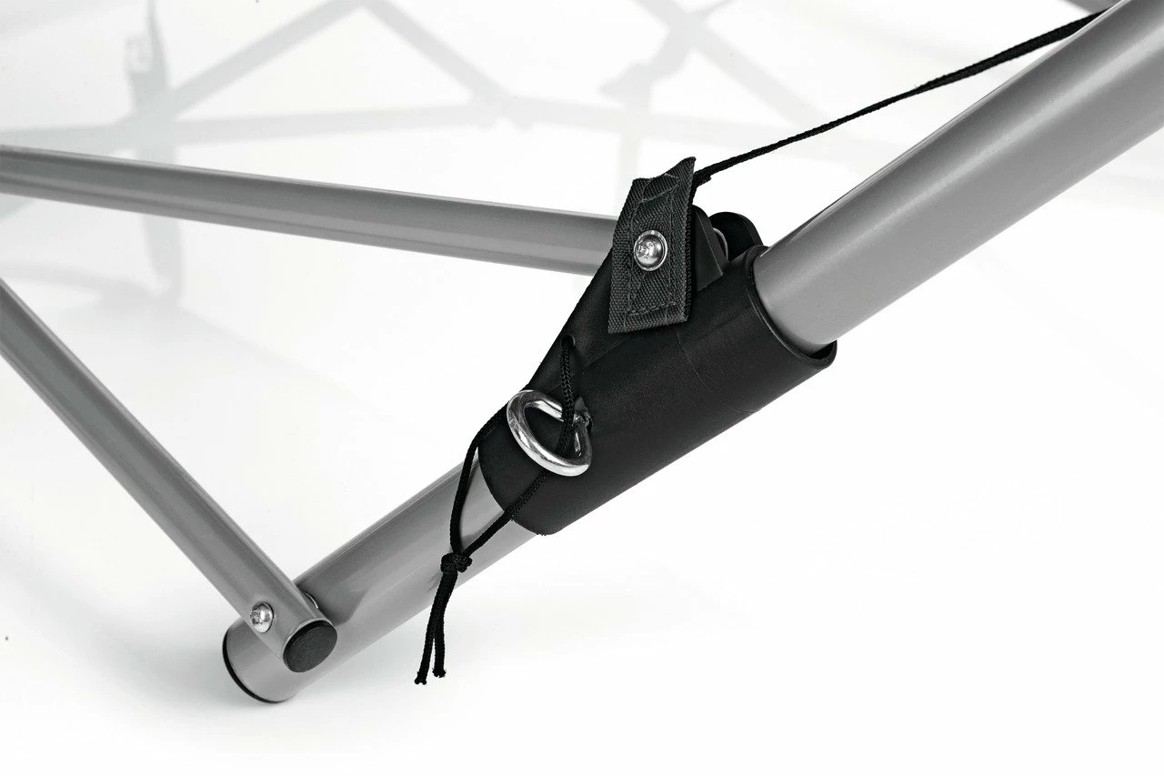 Die Hoberg Klappbare Hängematte können Sie flexibel einsetzen. Durch den fix zusammenfaltbaren pulverbeschichteten Stahlrahmen (Gewicht 8,08 kg) und die inkludierte Tragetasche lässt sich die wetterfeste Ausführung mit zum Strand nehmen, aber auch in Ihrem Campingurlaub nutzen. Aufgebaut können Sie auf dem Modellmaß von L/B/H ca. 240 x 80 x 73 cm bequem im Außenbereich entspannen. Die outdoortaugliche und pflegeleichte graue Polyesterauflage trägt Sie dabei sicher. Laschen an den Seiten sorgen für einen leichten Ein- und Ausstieg. Schnappen Sie sich gleich die Hoberg Klappbare Hängematte!
