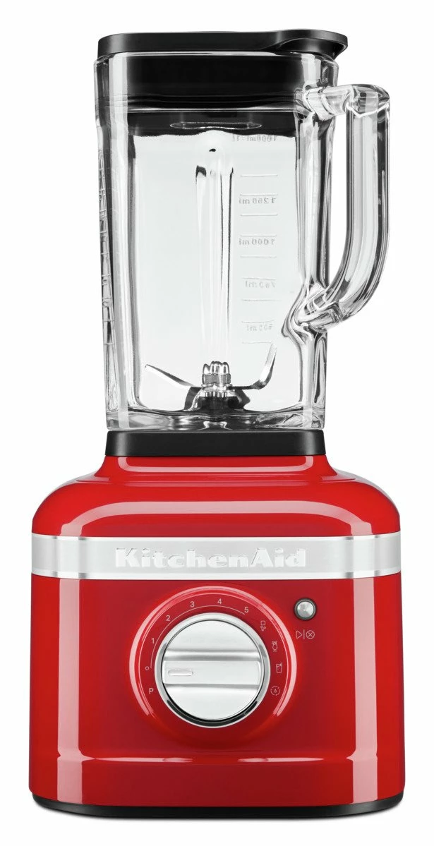 Der Kitchen Aid Standmixer „ARTISAN K400 “ zerkleinert und püriert für Sie nach Herzenslust Nüsse und sogar Eiswürfel. Vor allem wer Kleinkinder hat, wird den hochwertigen Mixer für den Netzbetrieb schätzen, da im Glasbehälter mühelos Babykost, Breie, Pürees und leckere Gemüsedips sowie supergesunde Smoothies zubereitet werden können. Das rote Metallgerät mit breitem, mattsilbernen Dekorband besitzt eine fröhliche Retro-Optik und harmoniert zu jedem Küchenambiente. Sein praktisches Gerätemaß B/H/T ca. 19,2 x 40,1 x 22,91 cm (Gewicht 6,62 kg) findet immer einen Aufstellplatz. Bestellen Sie gleich den Kitchen Aid Standmixer „ARTISAN K400 „!