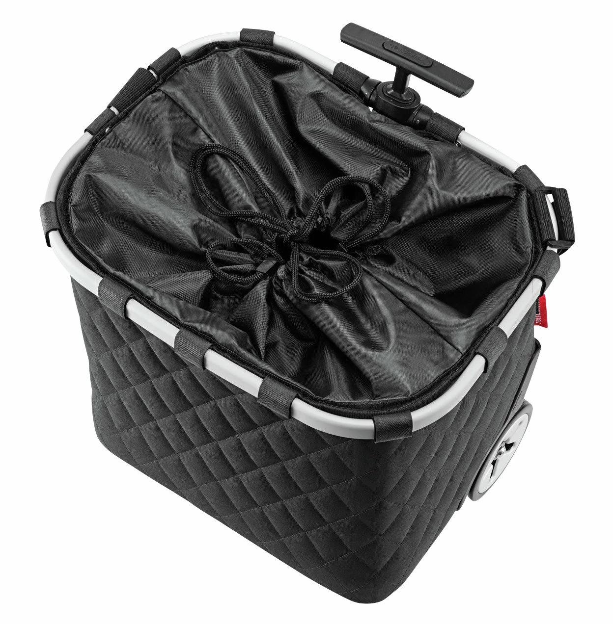 Mit dem schwarzen reisenthel Carrycruiser können Sie unbeschwert Ihren Wocheneinkauf erledigen. Sein cleveres Funktionsdesign ist mit praktischen Clip-Halterungen ausgestattet, um den Carrycruiser einfach am Einkaufswagen zu befestigen. Besonders angenehm sind dabei die versenkbare Teleskopstange sowie der integrierte Schultergurt, um die geräumige B/H/T ca. 42 x 47,5 x 32 cm große Tasche (Gewicht 2,49 kg) bei Bedarf über die Schulter tragen zu können. Große stoßgedämpfte Bodenräder, die beiden Standfüße und der Latz mit Kordelzug sind weitere Features. Das hochwertige, wetterfeste Polyestergewebe ist leicht zu reinigen. Nehmen Sie jetzt den reisenthel Carrycruiser als universelle Transporthilfe!