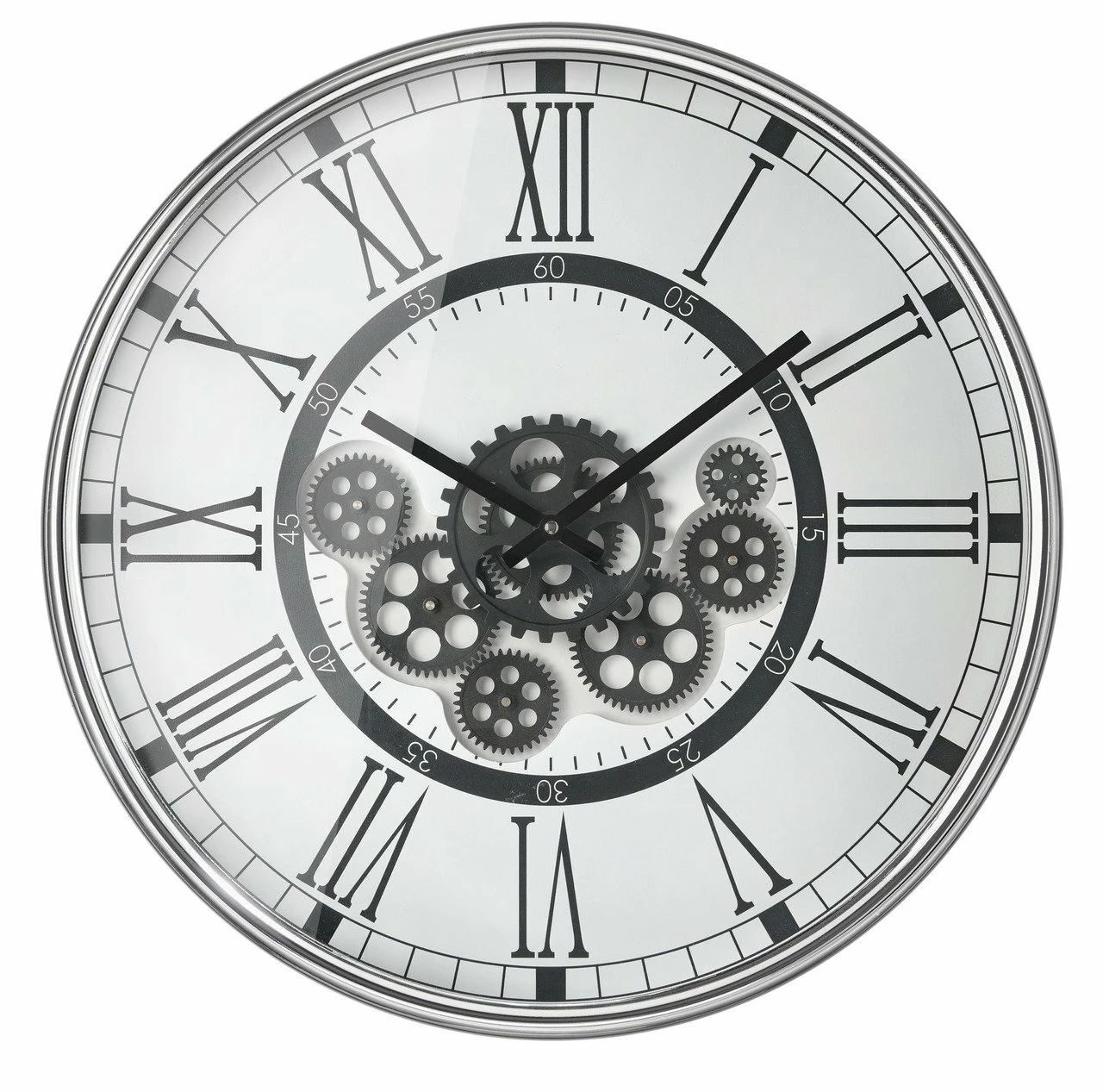 Eine Bahnhofsuhr mit Steampunk-Touch erhalten Sie mit der Sompex Zahnraduhr „BRISTOL“. Zusätzlich erinnern die kleinen Zahnräder an das Uhrmacherhandwerk. Die Uhr mit metallenem Gehäuse passt mit ihrem silberfarbenen Design zu hellen sowie dunkleren Wänden. D/T ca. 54,5 x 7,5 cm groß, sehen Sie auf dem römischen Ziffernblatt aus weiterer Entfernung die Uhrzeit. Das Konstrukt mit vor Staub schützender Glasscheibe wiegt solide 4,4 kg und kann an die Wand montiert werden. Holen Sie sich mit der Sompex Zahnraduhr „BRISTOL“ einen coolen Zeitmesser für die Küche oder den Flur!