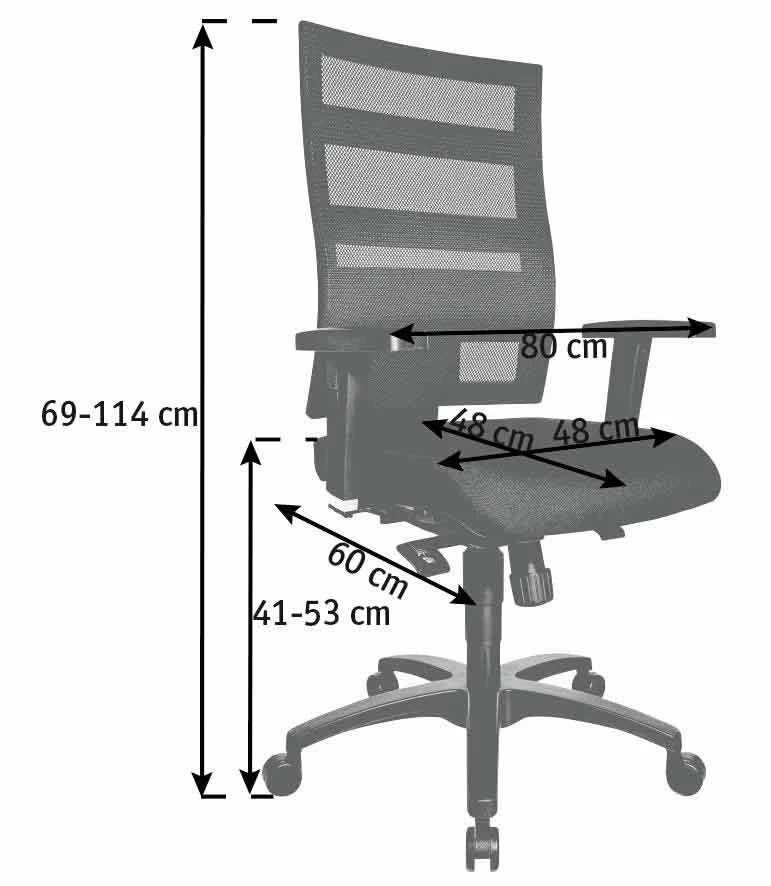 Das B/H/T ca. 48 x 114 x 48 cm große Modell ist mit einer Wippfunktion mit Synchromechanik sowie einem atmungsaktiven Rückennetz ausgestattet. Die Funktionsarmlehnen in Verbindung mit der G3-Punktsynchron-Mechanik sowie einer individuell einstellbaren Federkraft sorgen für Sitzkomfort. Die Belastbarkeit beträgt 110 kg. Gönnen Sie sich den Drehstuhl „X-PANDER Plus“ von Topstar!