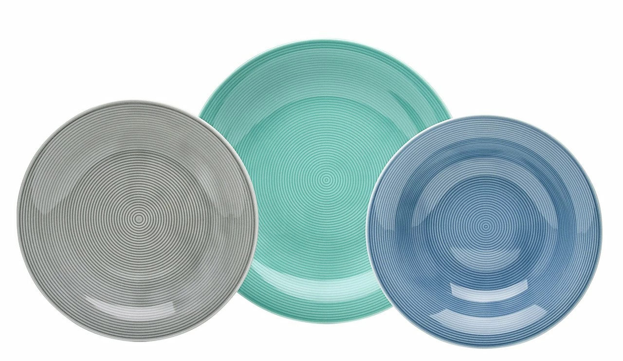 Das Kombiservice 24-tlg. „LIFE“ von Van Well zaubert Farbe auf den Esstisch. Das Set aus Porzellan besteht aus je zwei Stück Geschirr in den Farben Grün, Grau und Blau. Insgesamt sind das je 6 Kaffeebecher (40 cl), Dessertteller (Ø ca. 21 cm) sowie flache (Ø ca. 25 cm) und tiefe (Ø ca. 20 cm) Essteller. Alle Teile sind mikrowellen- und spülmaschinengeeignet und werden im 4-Farbdruckkarton geliefert. Gestalten Sie eine schöne Tafel mit dem Kombiservice 24-tlg. „LIFE“ von Van Well!