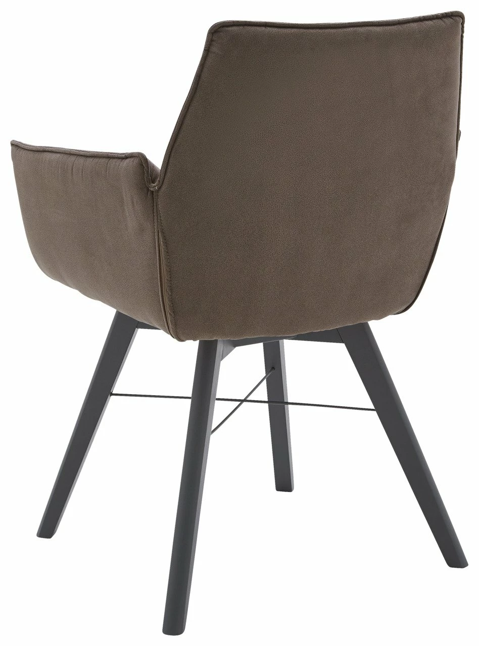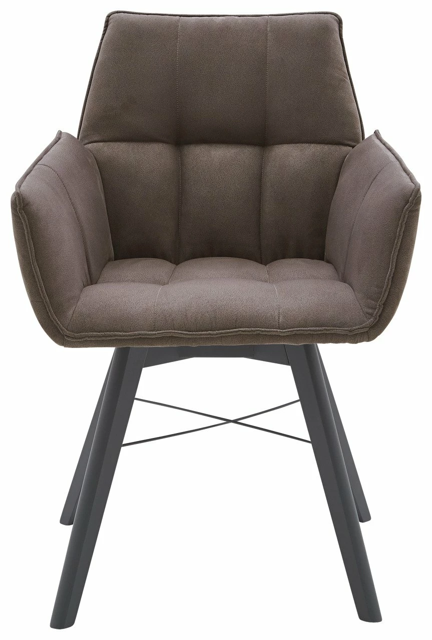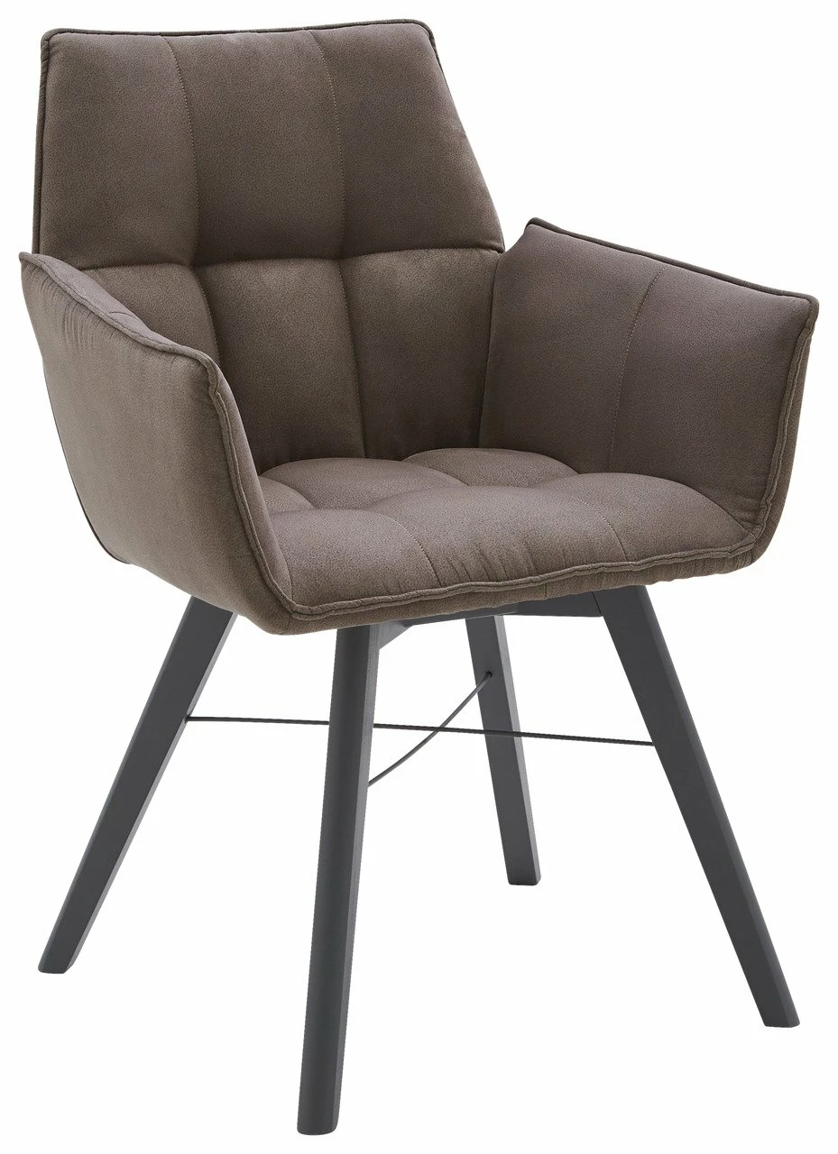 Modernes Hochglanzdesign mit Skandiambiente betont der Waldwelt Armlehnenstuhl „BARBADOS“ elegant. Der taupefarbene Mikrofaserbezug mit abgesteppten Sitzflächen schafft mit seinem grau lackierten Buchenholz-Vierfußgestell mit Metallkreuz eine behagliche Harmonie.