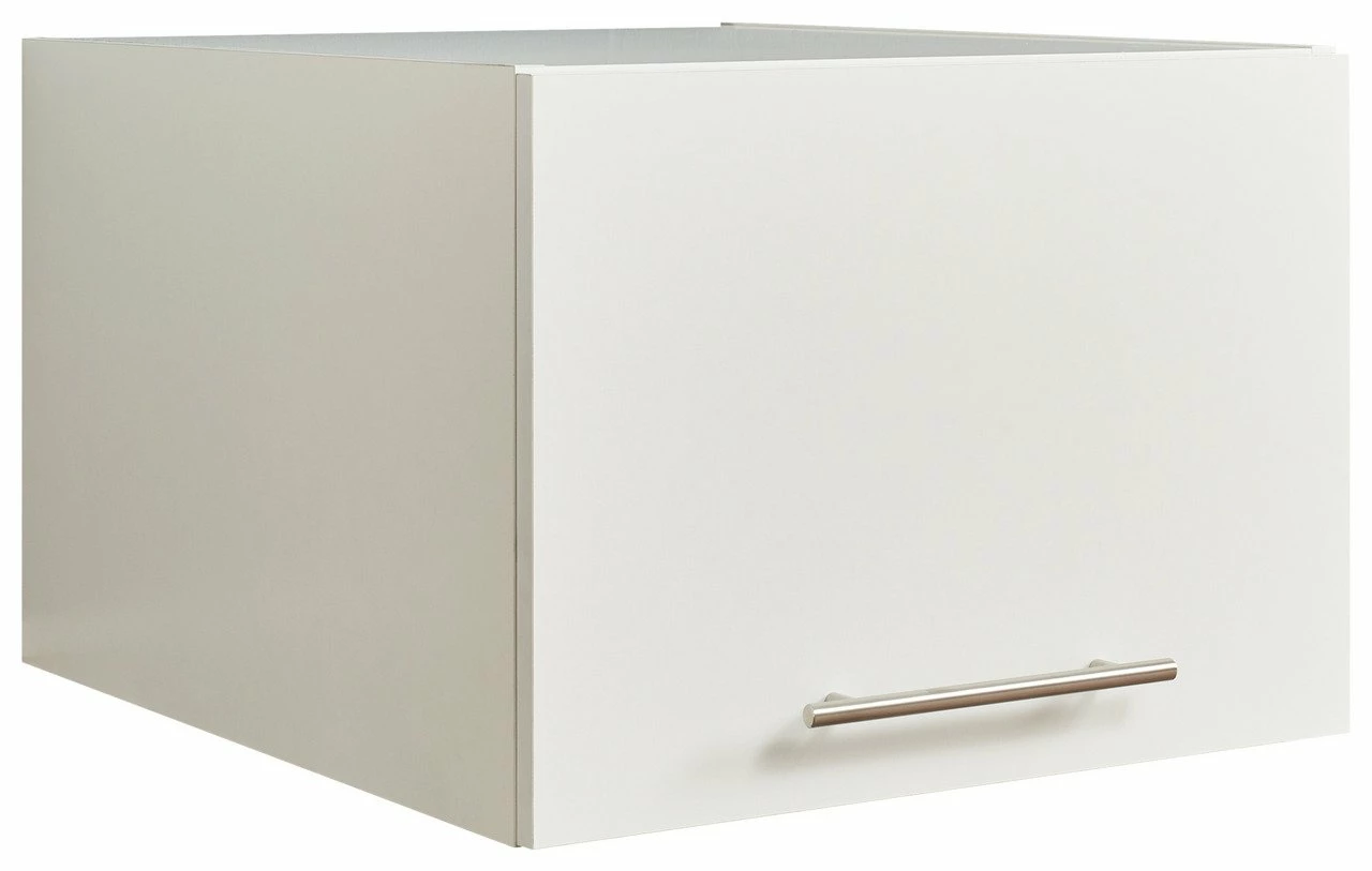 Ein weißer Korpus, eine Front in derselben Farbe und metallfarbene Griffe prägen das Design des Xora Aufsatzschranks schmal „WASCHPUNKT“. Damit ist er die ideale Ergänzung für den Xora Geräteschrank.