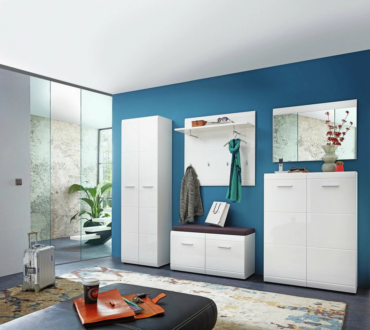 Die weiße Bank „AVILA“ von Xora ist Teil der gleichnamigen Garderobenserie. Der Korpus aus Holznachbildung wird durch eine weiße Front aus MDF in Hochglanz abgeschlossen. Zwei tiefgezogene Türen öffnen das Innere, das mit jeweils einem Einlegeboden geteilt ist. Mit ihren Maßen B/H/L von ca. 96 x 50 x 40 cm passt die Bank in jeden Flur. Gestalten Sie Ihre Wohnung praktisch und schön mit der Bank „AVILA“ von Xora!