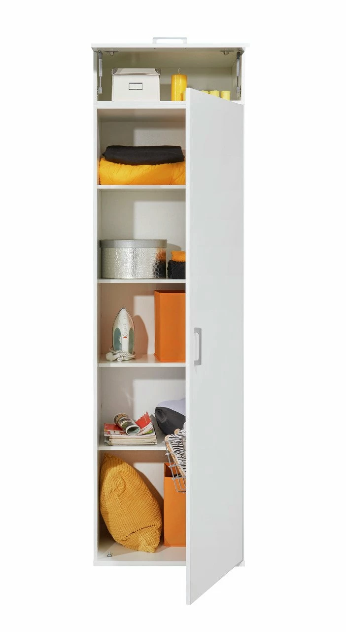 Dank seiner Maße B/H/T von ca. 60 x 205,8 x 65,4 cm findet der Hochschrank aus robuster Holznachbildung leicht Platz. Für Ihre Sachen stehen hinter einer Tür eine Kleiderstange und ein Boden zur Verfügung. Verstauen Sie Ihre Utensilien im Xora Hochschrank Typ WSCH207-60 „WASCHMAX“!