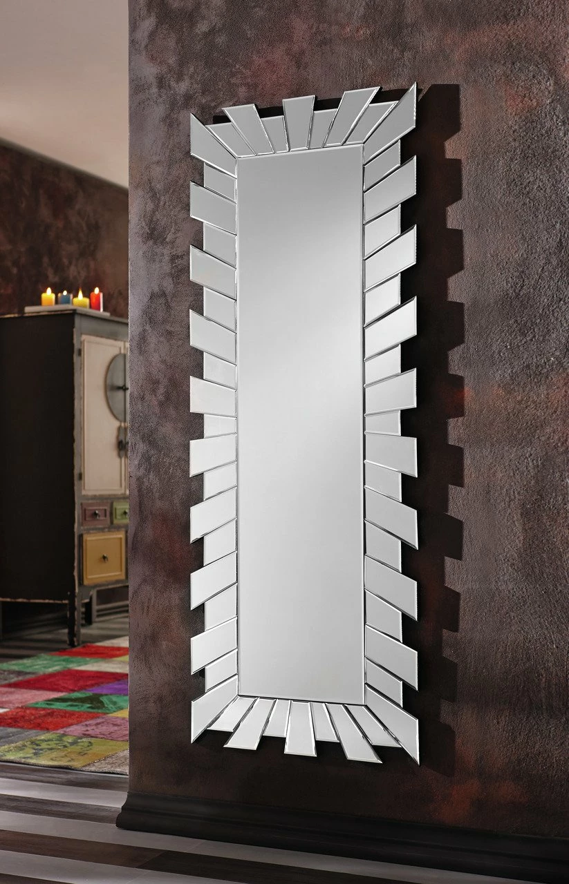Auffällig modern – das ist der Spiegel „LONDON“ der Marke XORA. Das Design begeistert durch die ansprechende Strahlenoptik, die den Spiegel komplett umrahmt. Ob Schlafzimmer, im Ankleidezimmer oder als Blickfang neben der Garderobe im Flur: Der Wandspiegel sieht überall toll aus. Der Rahmen ist aus hochwertiger Holzqualität gefertigt und komplett verspiegelt. Durch die großzügigen Maße von B/H/T ca. 120 x 60 x 2 cm eignet er sich auch als Körperspiegel. Bringen Sie einen modernen Touch an Ihre Wand und bestellen Sie jetzt den Spiegel „LONDON“ von XORA.