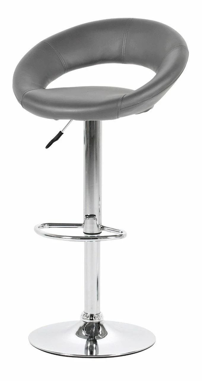 Er ist in einem modernen Design gefertigt und mit einem pflegeleichten Kunstlederbezug in Grau versehen. Abgerundet wird der trendige Look durch das höhenverstellbare Chromgestell und der modernen Sitzschalenform.