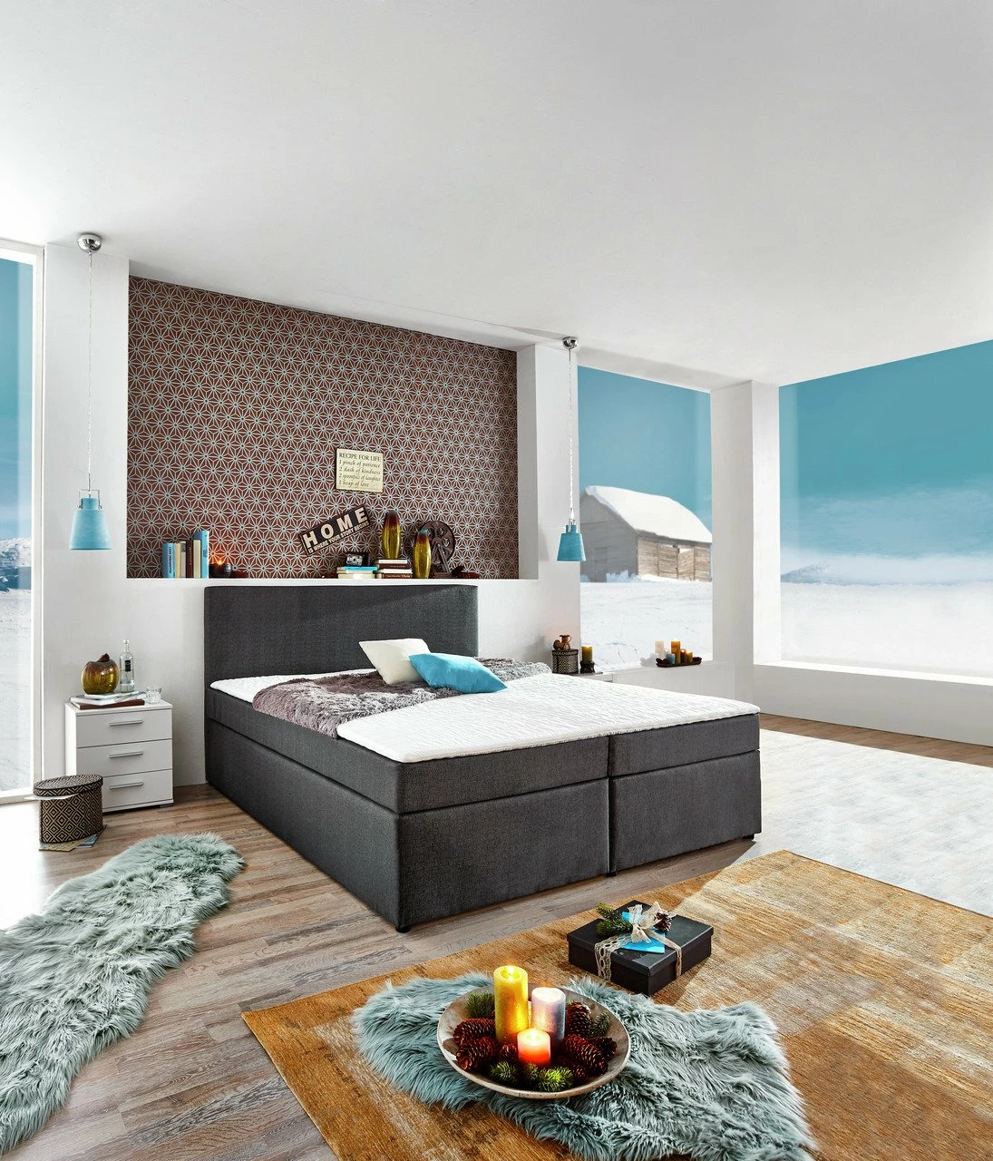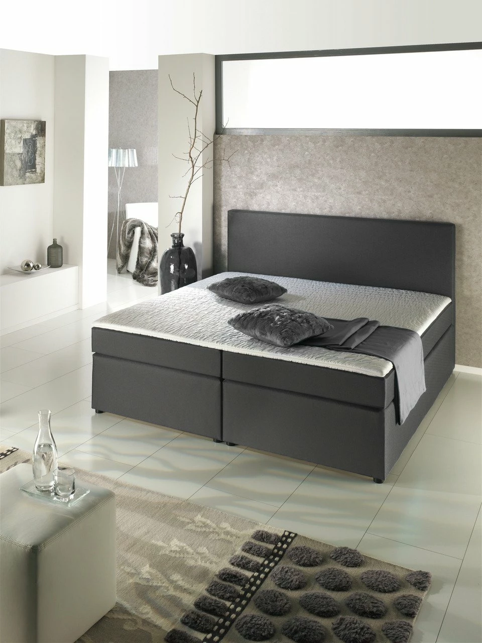 Das aparte Z2 Boxspringbett BX830 „MICHIGAN“ in geradlinigem Design mit anthrazitfarbenem Stoffbezug ergänzt jedes moderne Wohnambiente. Für komfortables Liegen sorgt der Bonellfederkern.
