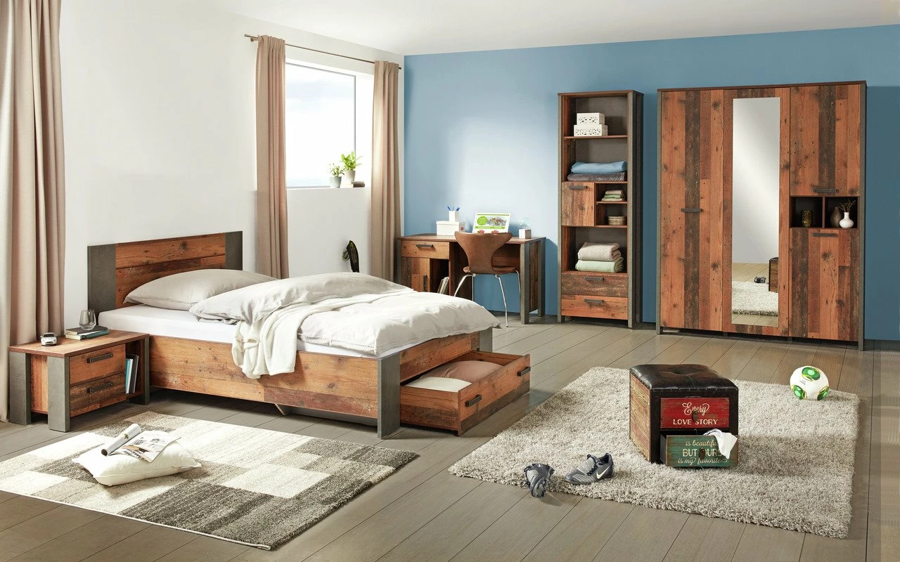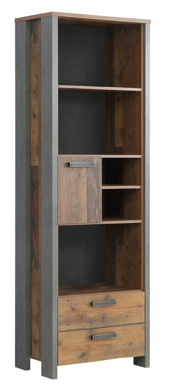 Mit Korpus und Front im Old-Vintage-Look und seiner Kombination mit dunkelgrauer Betonoptik ist das Z2 Regal „CLIF“ ein Schmuckstück. Es passt ins Wohn- oder Esszimmer.