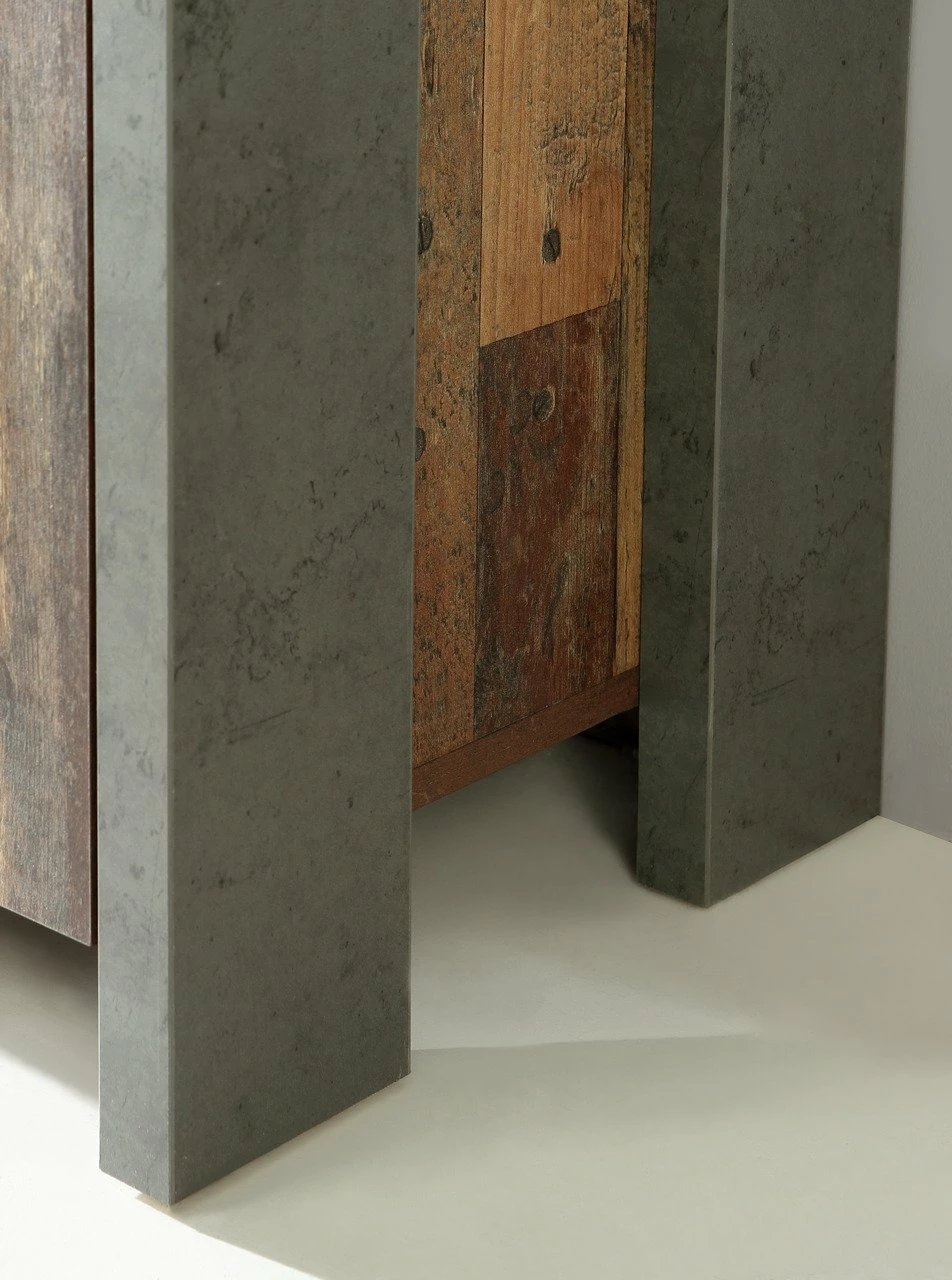 Mit Korpus und Front im Design Old Wood Vintage passt das Z2 TV-Lowboard „CLIF“ bestens zu einer Einrichtung im Vintage-Stil. Seine dunkelgraue Betonoptik sorgt für moderne Akzente.