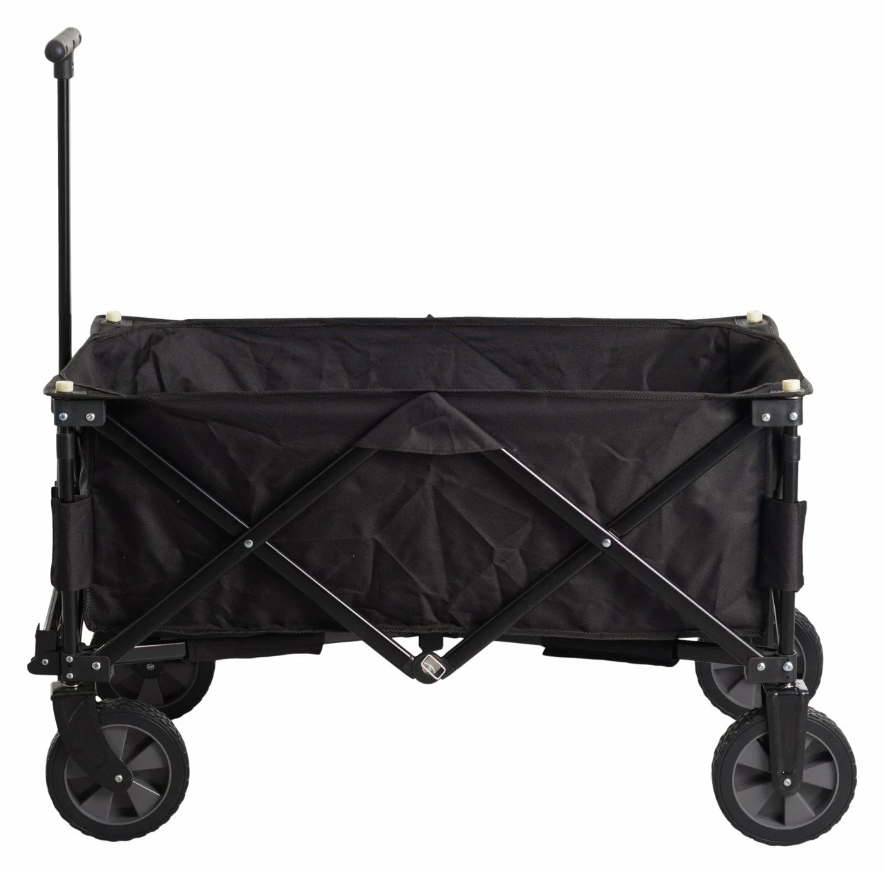 Ein lustiges Gefährt für Kinder oder Tragehilfe bei schweren Einkäufen – mit dem Bollerwagen inkl. Dach „OUTFIT“ haben Sie ein flexibel nutzbares Gefährt. Der Rahmen aus schwarzem Metall lässt sich bei Nichtgebrauch einfach zusammenfalten. Das schwarze Gewebematerial ist pflegeleicht und robust. Selbst bei schlechtem Wetter können Sie den Wagen dank mitgeliefertem Dach nutzen. Die leicht laufenden Räder halten zusätzlich zum Eigengewicht des Wagens von 9,5 kg noch einiges aus. Die Zugstange dient zugleich als praktischer Tragegriff, wenn Sie den Wagen zusammengeklappt haben. Wählen Sie den Bollerwagen inkl. Dach „OUTFIT“!