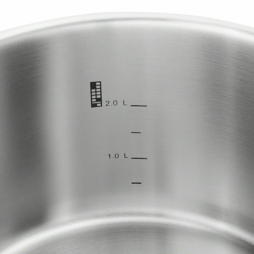 Das Topf-Set besteht aus drei Kochtöpfen mit den Durchmessern von ca. 16 cm, 20 cm und 24 cm und einem Bratentopf mit dem Durchmesser von ca. 20 cm. Alle Töpfe verfügen jeweils über einen Glasdeckel für eine bessere Kontrolle des Kochvorgangs. Zusätzlich enthält das Set eine Stielkasserolle mit Skala zum genauen Abmessen von Mengen. Die Küchenhelfer sind für alle Herdarten einschließlich Induktionsherdplatten geeignet. Darüber hinaus sind sie spülmaschinen- und backofengeeignet.